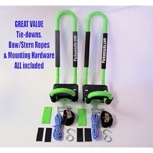 2013-03-03 23:16:15.328554-05 Category: Sports & Outdoors Vendor: Heavy duty steel design is padded to protect your kayaks and provide years of trouble free service. The large "J" style design Keywords: PK-KRG1,PK-KRG1 1,PK-KRG1 1 Pair  Product Description : The preferred, efficient method of transporting your Kayaks at a very affordable price! This standard design is universal and will mount to almost any load bar or luggage rack on vehicles today. It's designed to transport kayaks on their side, saving space and allowing you to transport 2 kayaks on one vehicle. (Kayaks not included) Please view the enclosed pictures to see how they can be mounted on various vehicles and how easy they are to use. Due to it's efficient design you will still have plenty of room on your vehicle racks to hold other things. Comes with 2 different sets of bottom mounting plates one curved and one straight (flat), depending on your need. All mounting hardware is provided including the quick adjust hull tie down straps, and the bow/stern tie down ropes for added transportation safety. Our racks will easily fit most factory and after market round, square, oval, or flat luggage racks and load bars, up to 3 1/2 " wide. (This package consists of 1 Set of Kayak Racks which will hold 1 Kayak) Find out more |